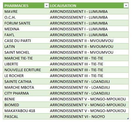 Planning Mensuel Pharmacies de garde à Pointe-noire